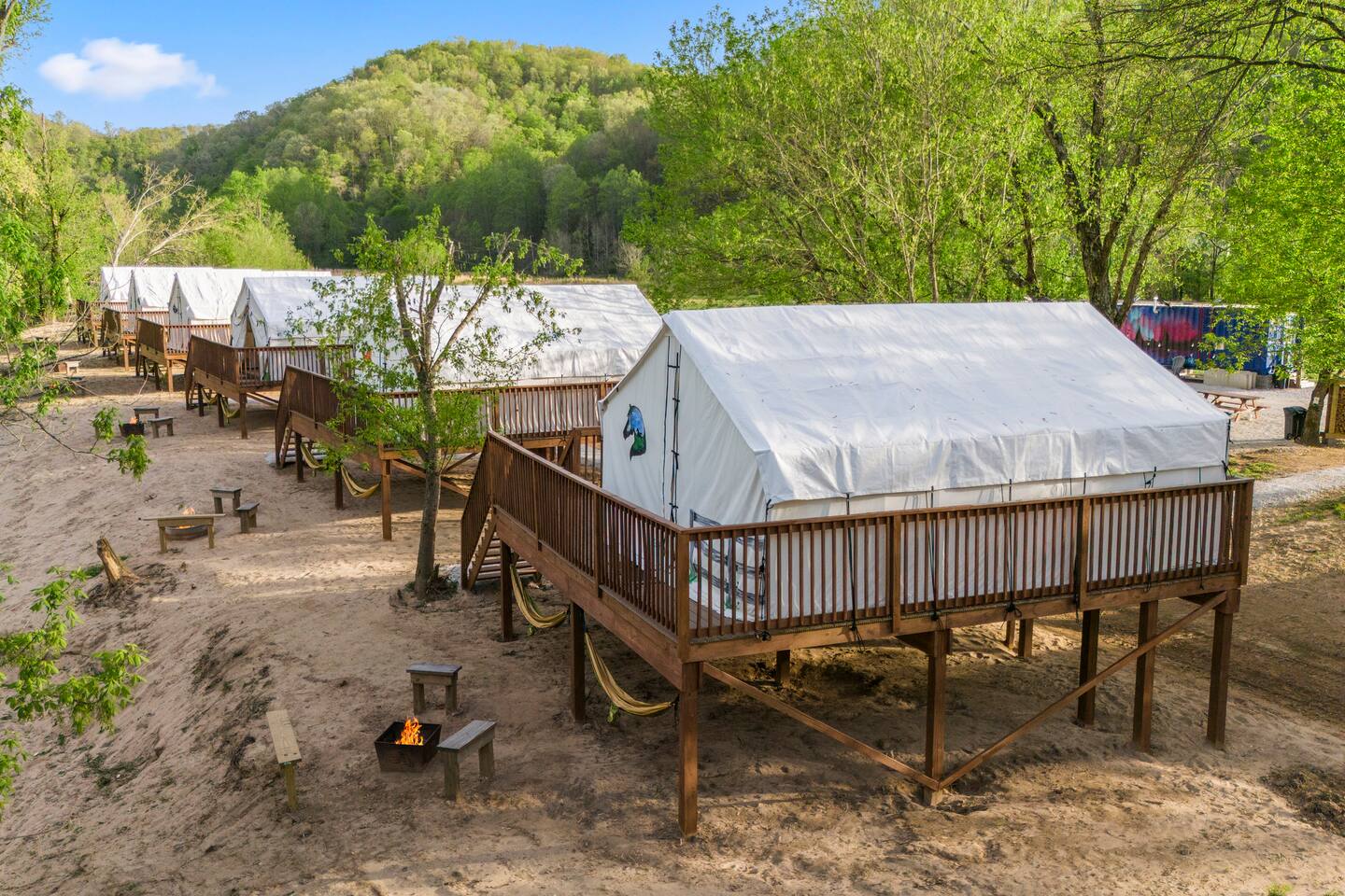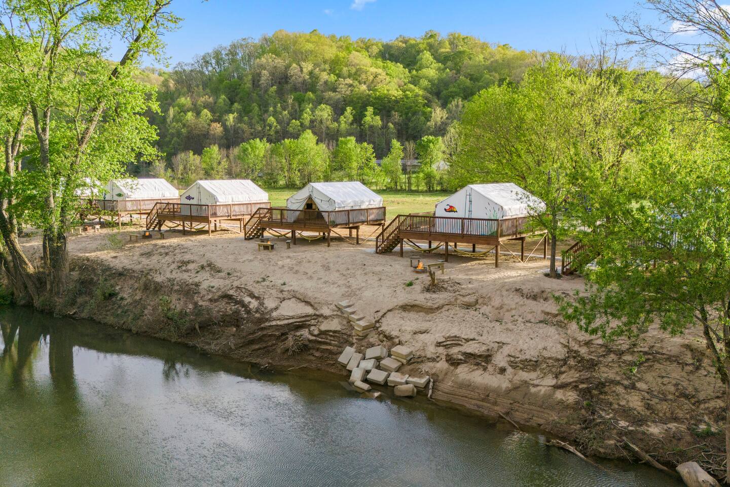 7 Furnished Glamping Tents/River Front/Sleeps 28
