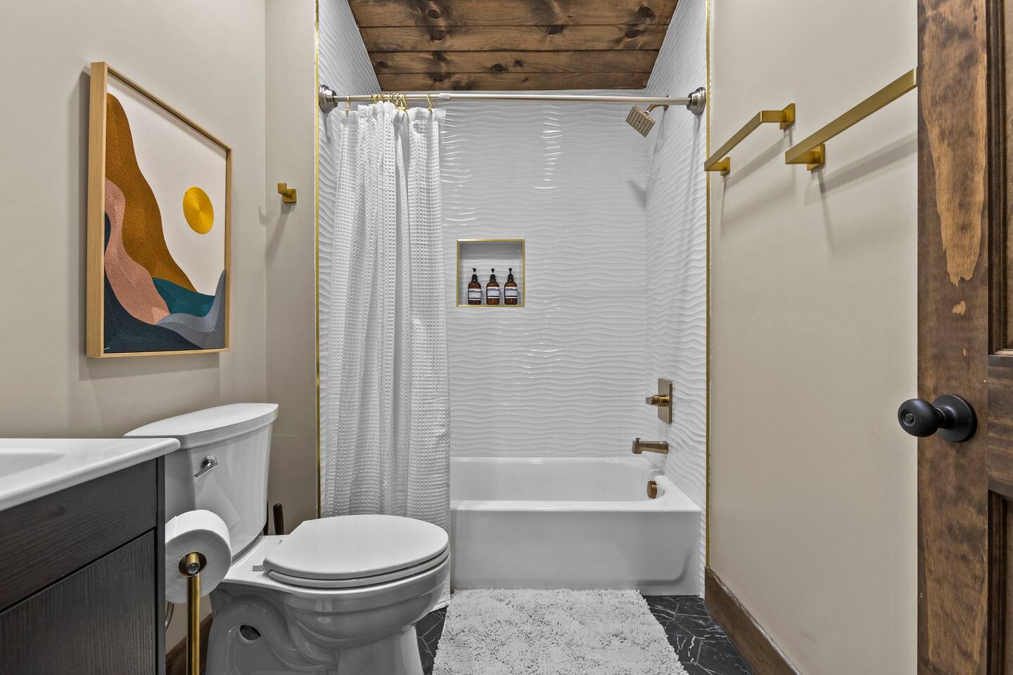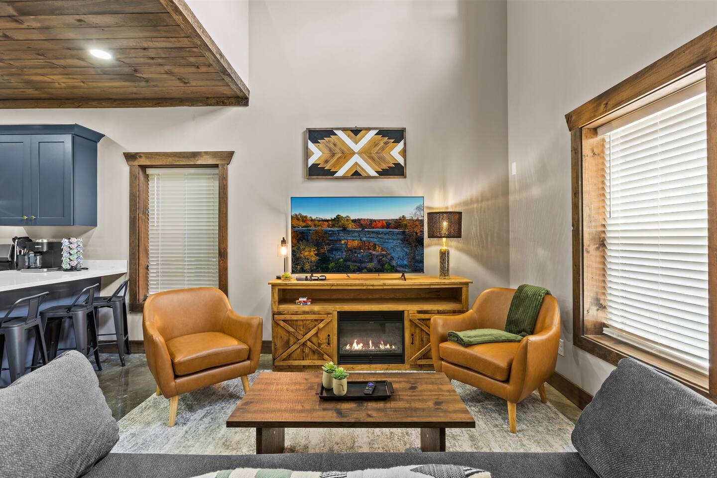We had an amazing stay! We loved the ability to bring our fur baby along. The kids loved having the loft and bedroom upstairs and a bathroom that was “theirs”. The lights and remotes were all labeled making it easy to know what went where. The bathroom downstairs was absolutely stunning with a waterfall shower and bathtub. They even had a washer and dryer I could have used, except I forgot to grab the laundry pods 🤦🏼‍♀️. A baby bathtub was also available which was amazing being that we had a 3.5 month old along for the journey, it’s the little things. Speaking of which, the big kids loved the little snacks that were left such as goldfish and fruit snacks! Watching the sunrise from the hot tub is a must and was so beautiful and peaceful! We also enjoyed the bag boards in the common area. It was a quick drive to the gorge and natural bridge. We would definitely stay here again, maybe when the littles are bigger!! 10/10 definitely recommend 🥰