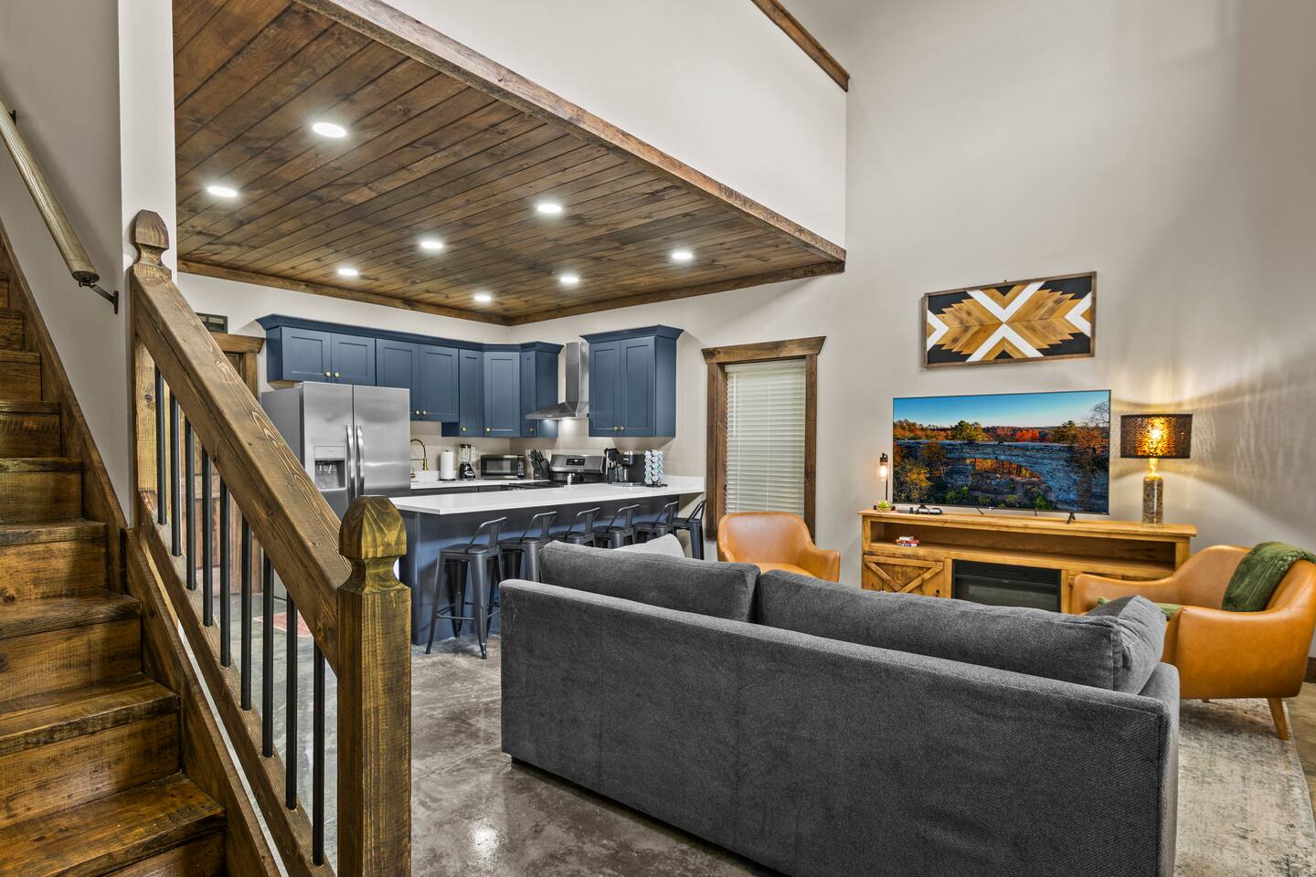 Please note: This property is a distinctive Fourplex Barndominium. This listing is for one unit facing the front of the building. Enjoy the privacy of your own hot tub and firepit on your side of the home. The shared breezeway offers outdoor games for a bit of fun and friendly competition.