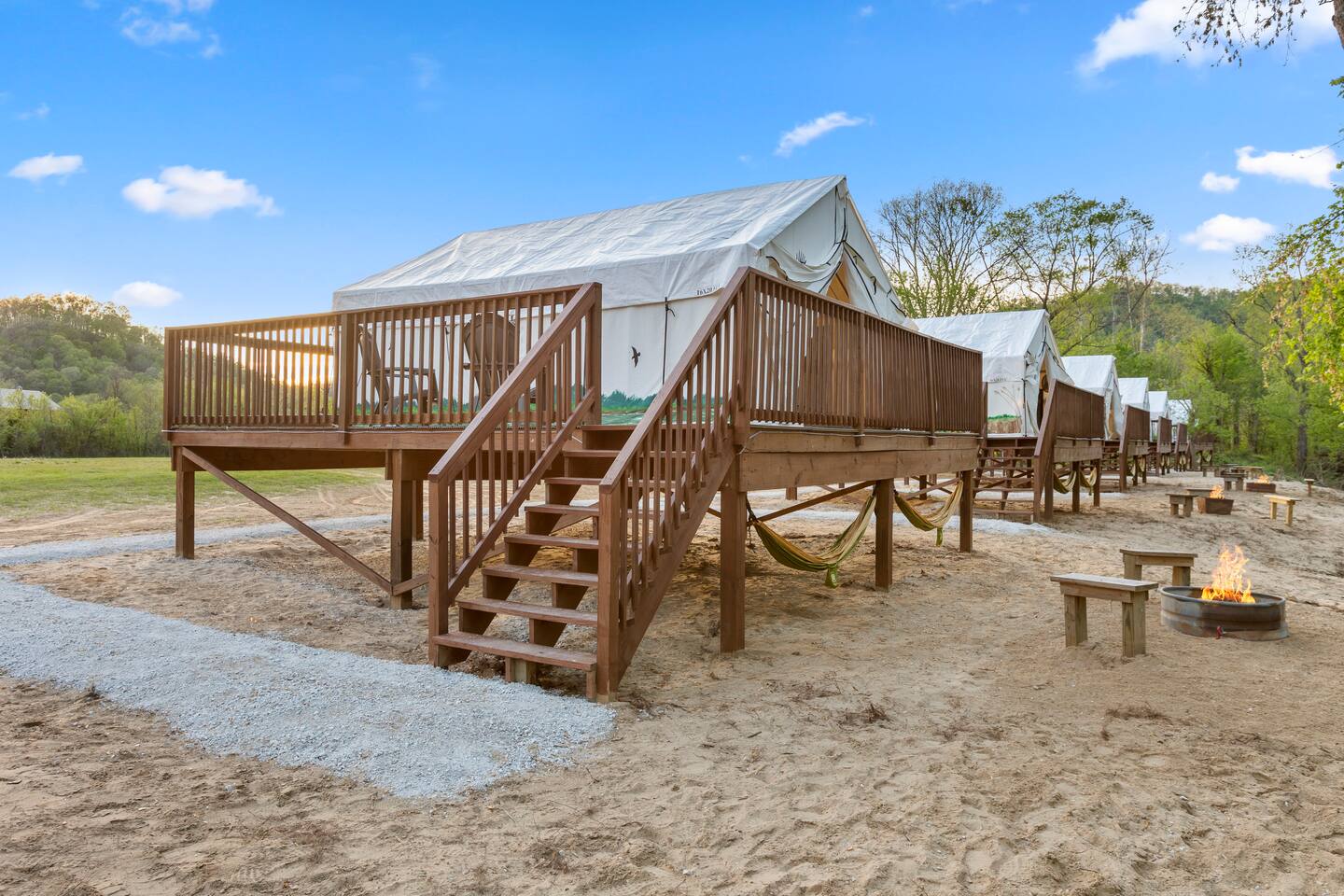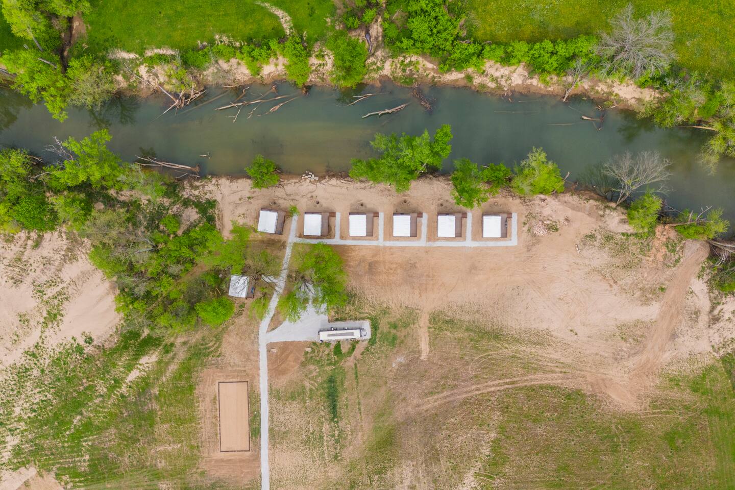 Experience pure relaxation within the enchanting shelter of a 320 SF Glamping Tent, nestled just a stone's throw from the tranquil waters of the Red River. The Soaring Eagle beckons with its fully furnished sanctuary, boasting two queen sized beds, smart TV, fan, AC unit, coffee station, minifridge, microwave, internet access, firepit, grill, access to a bath house and an array of amenities. Despite the 10-minute drive to shops and restaurants, the area exudes a sense of serene seclusion.