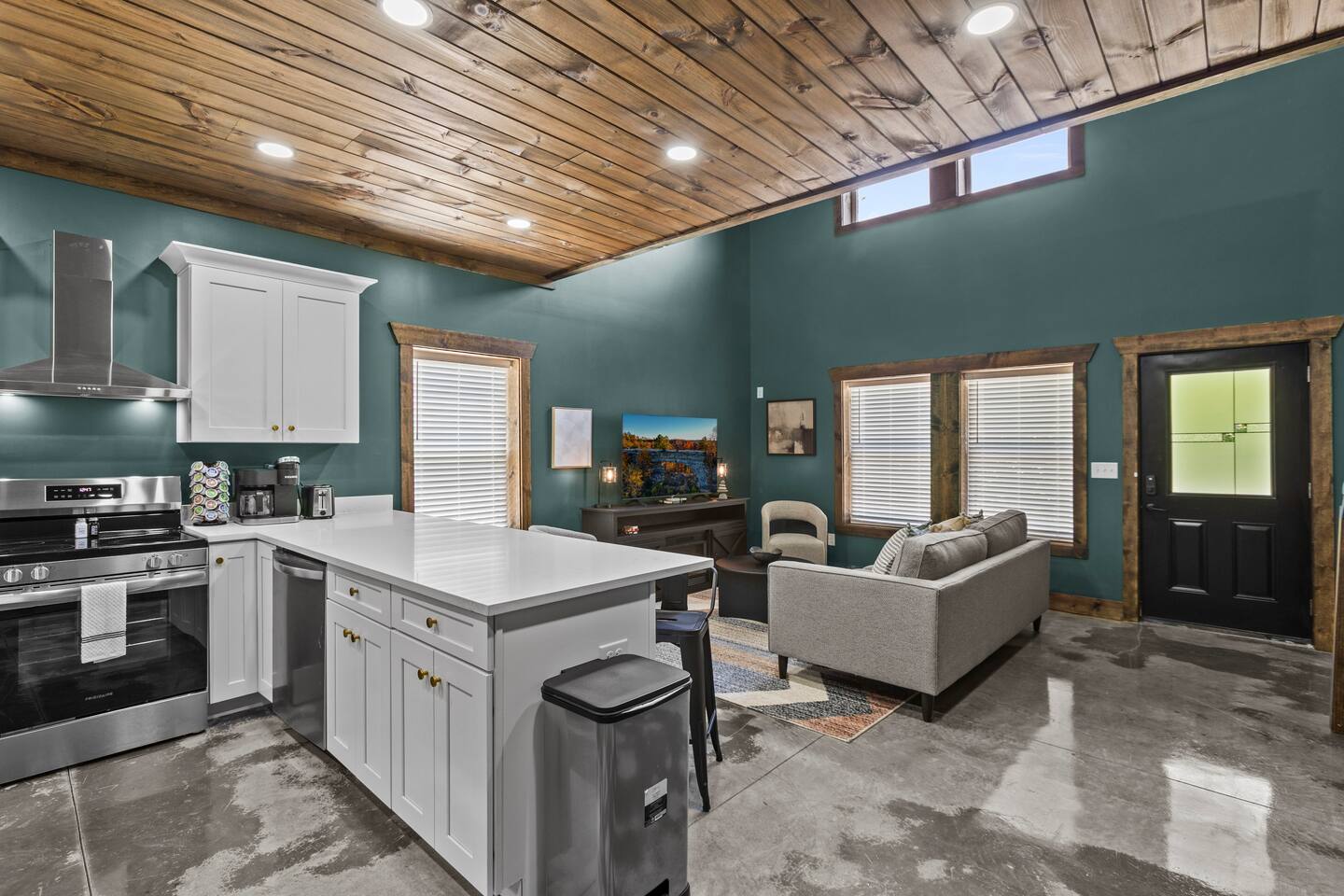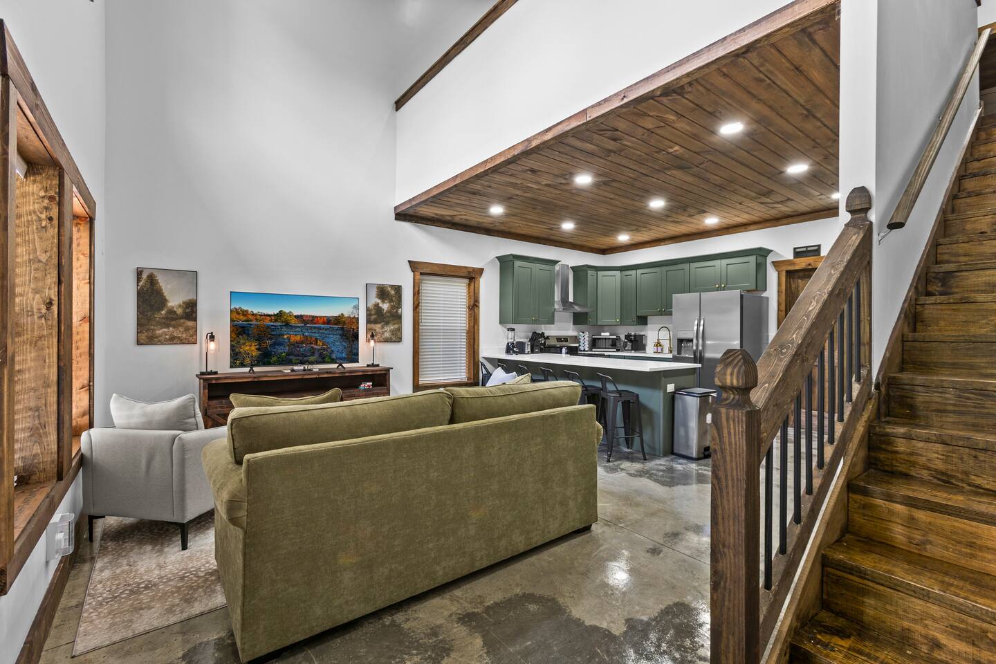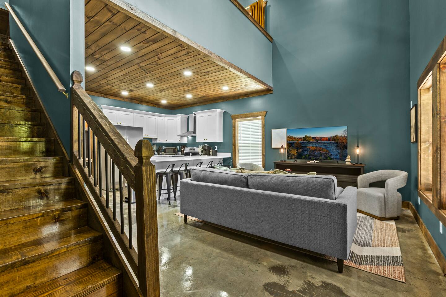 Step into the charm of a pristine Barndominium — a fresh take on luxurious living. This stunning home showcases soaring ceilings, stylish concrete floors, and an impressive array of modern amenities. Embrace the elegance of this unique retreat, where high ceilings and sleek concrete flooring set the stage for comfort and style. Unwind in your private hot tub, perfectly positioned to offer breathtaking views of the scenic Eastern Kentucky mountains.