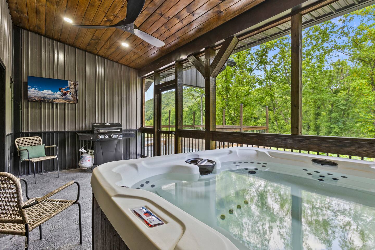 Enjoy the luxury of having two private hot tubs and two fire pits all to yourself. The shared breezeway offers outdoor games for some fun and friendly competition.